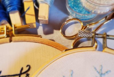 Claire partage également sa passion à travers des cours et stages de broderie ouverts à tous, célébrant un savoir-faire français authentique au cœur des Alpes.